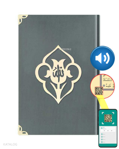 Hafız Boy Kadife Kuran-ı Kerim ;(Koyu Gri, Güllü, Mühürlü)