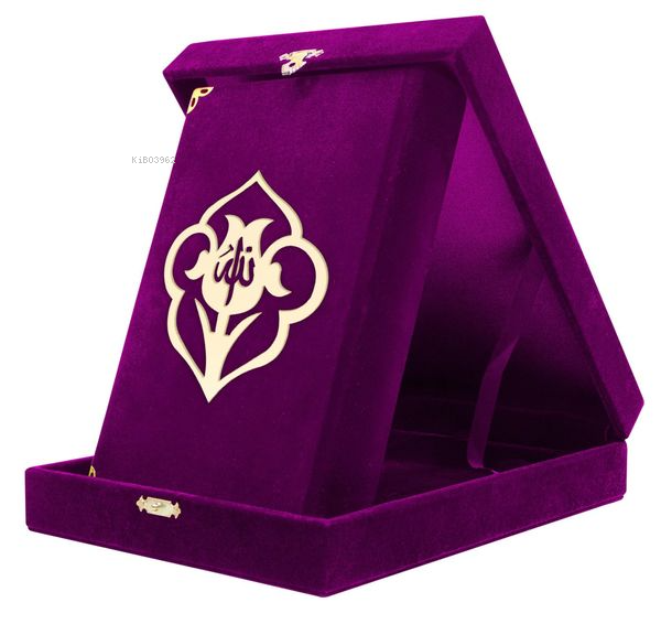 Kadife Kutulu Kur'an-ı Kerim (Çanta Boy, Güllü, Mor)