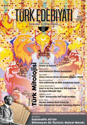 Dosyamızın ilk yazısı Ahmet Taşağıl'a ait. Taşağıl, Bozkurt mitini, efsane, destan ve tarihî kaynaklar üzerinden inceliyor; Türk kültüründe Bozkurt'un (Börü) bağımsızlığı, bilgeliği ve liderliği simgelediğini bu nedenle de tarihî ve mitolojik bir önemi olduğunu dile getiriyor. Mehmet Aça, Sibirya Şamanizmi'nin temel unsurları, ritüelleri ve panteonu üzerinden Altaylardaki Türk topluluklarının dünya görüşünü ve kültürel kimliğini irdeliyor. Bayram Durbilmez, Türk kültüründe ve mitik anlatılarda geyik figürünün kutsallığını ve bir simge olarak nasıl kullanıldığını inceliyor. Geyik mitinin, Türk toplumlarının kültürel hafızasında yer edinmiş, destanlar, masallar ve sanat eserleri aracılığıyla nesilden nesle aktarılmasından bahsediyor. Gulzar Mammadova, Türk dünyasının büyük yazarı Anar'ın Ak Koç Kara Koç adlı eserinde yer alan üç temel mitolojik figürü -Ak Koç, Kara Koç ve Zümrüdüanka- ele alarak yazarın yeni bir mitolojik anlatı inşa ettiğine değiniyor, kitaptaki siyasi ve sosyal eleştirilere vurgu yaparak Anar'ın kültürel bağlamda bizlere bir çıkış yolu önerdiğini söylüyor. Hilal Akça Öcal, Fatma Aliye'nin Enin romanında yer alan tanrıça mitlerini, anne-kız ilişkisi üzerinden de kadınların toplumsal ve aile içi trajedisini inceliyor. Dosyamızın birinci bölümü Ressam Rauf Tuncer ile yaptığımız söyleşiyle son buluyor. Tuncer, eserlerinde Türk tamgaları, Göktürk alfabesi, at, ejderha, koç gibi mitolojik objeleri kullanarak kadim kültürümüzü modern estetik bir sanat diliyle harmanlıyor.