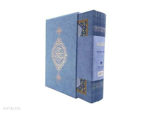 Açıklama: Ahmed Husrev hattı, okunuşu kolay, Tevâfuklu Kur'ân-ı Kerîm'in otuz cüz'ü ayrı ayrı ciltlenerek hazırlanan Hatm-i Şerîf Cüzleri, mukabelelerde ve bilhassa toplu hatimlerde büyük bir rahatlık sağlamaktadır. Kendine mahsus çantası ile topluca taşıması da oldukça kolay olan Hatm-i Şerîf Cüz'leri, Allâh Kelâmı'nı beraberce tilâvet ederek hatmetmek isteyenlerin tercîhi olmaktadır. Ayrı ayrı bez ciltli ve karton ciltli olmak üzere iki çeşidi bulunan Hatm-i Şerîf Cüz'leri ile mukabelelere katılmak isteyenler, cüz'leri ayrı ayrı taşımanın rahatlığını yaşamaktadırlar.